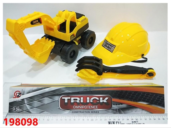 惯性工程挖土车+帽+2沙铲(黄)
