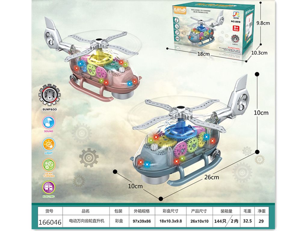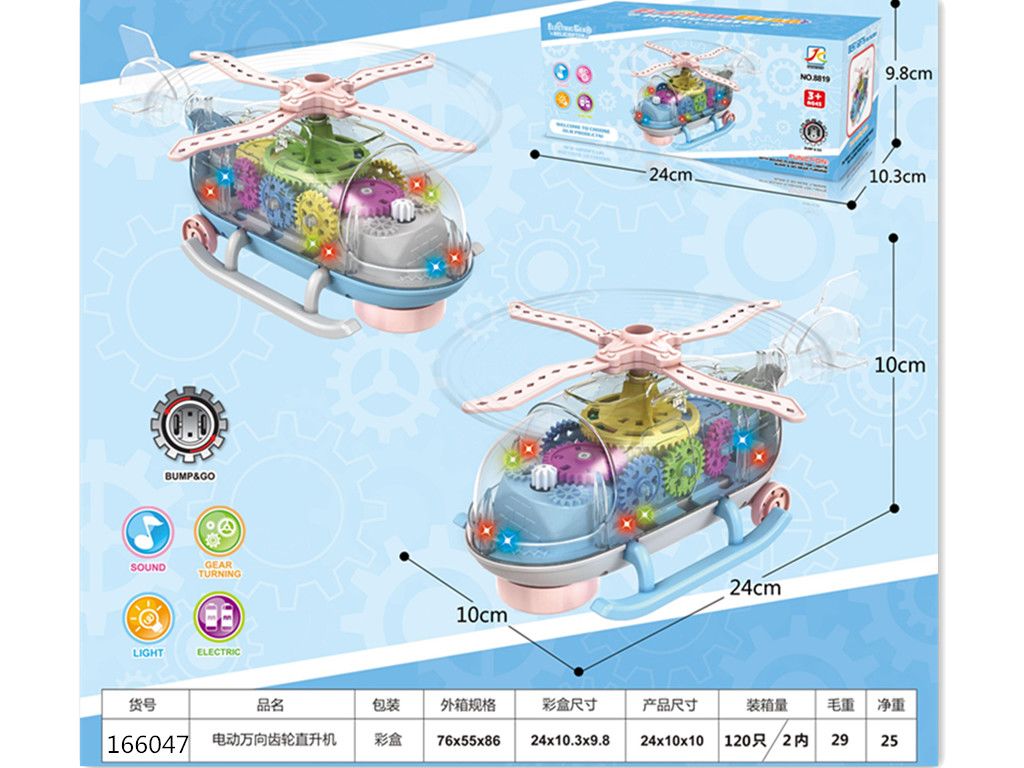 电动万向灯光音乐齿轮透明直升机