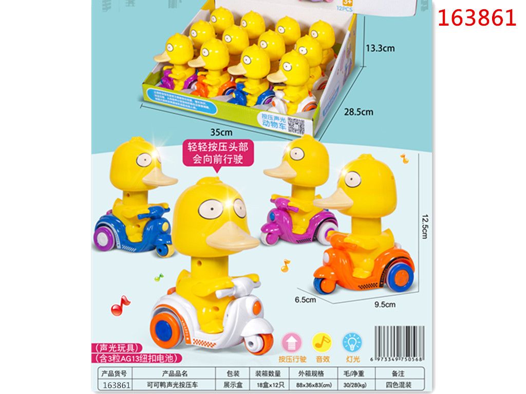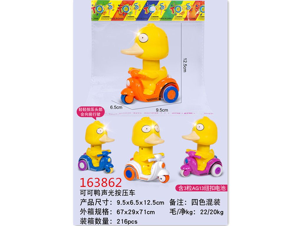 可可鸭声光按压车(含3颗纽扣电池)12只)