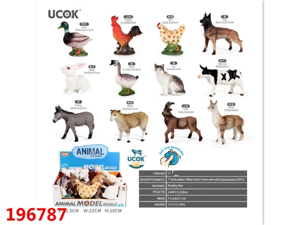12只7寸搪胶充棉农场动物展示盒