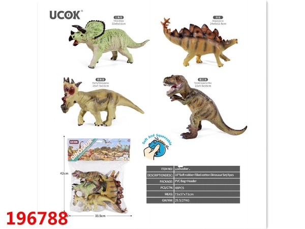4只10寸软胶充棉恐龙套装