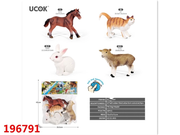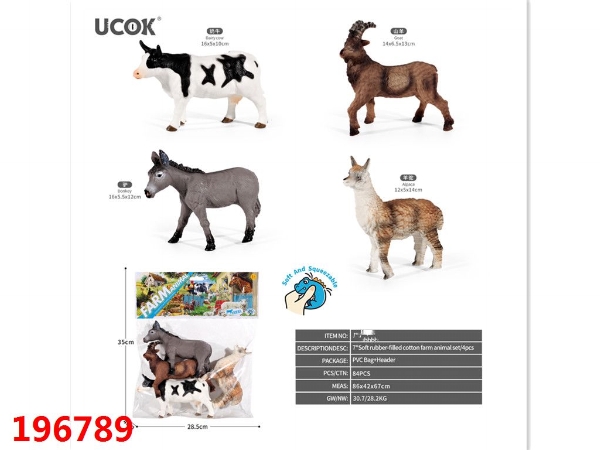 4只7寸搪胶充棉农场动物套装