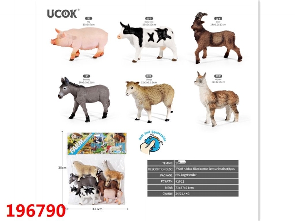 6只7寸搪胶充棉农场动物套装