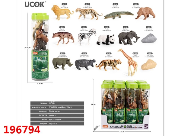 12只3寸野生动物模型套装