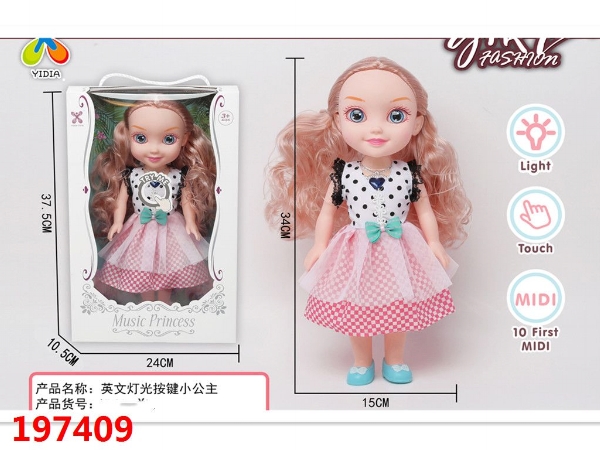 英文触摸灯光音乐静态娃娃(包电)