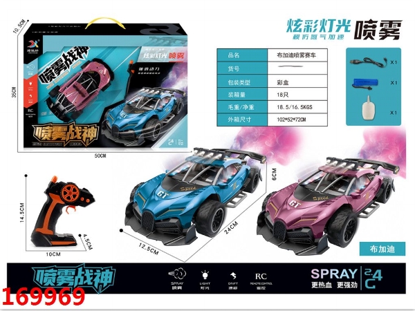 2.4G布加迪灯光音乐喷雾赛车