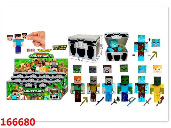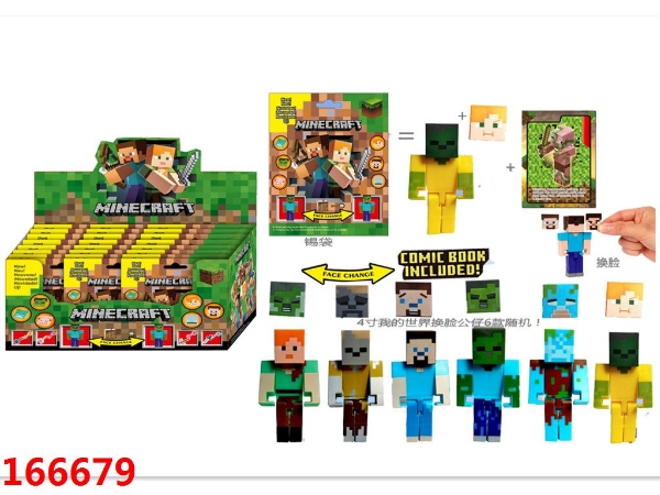 4寸我的世界换脸公仔单只+脸+僵尸头宝箱24只公仔随机