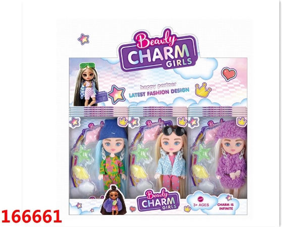 6寸实心5关节新潮系列迷你娃娃互动玩乐女孩公主+5件套配件