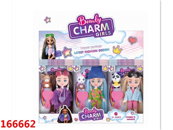6寸实心5关节新潮系列迷你娃娃互动玩乐女孩公主+PVC软胶动物
