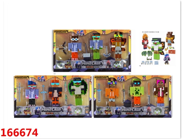 4寸我的世界创造者公仔3只(关节可动 带配件)3款混