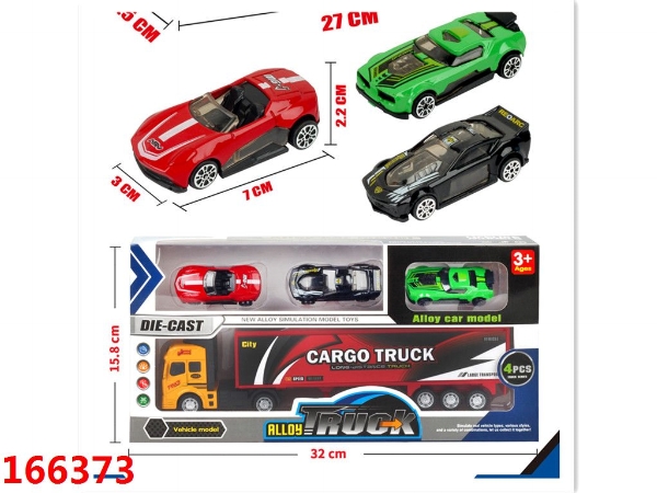 合金回力货柜车+3只合金滑行跑车
