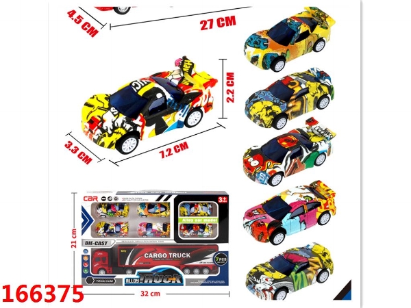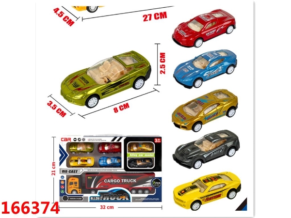 合金回力货柜车+6只ABS回力赛车