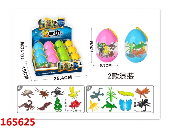 2.5寸PVC昆虫动物8pcs,12个蛋壳/盒