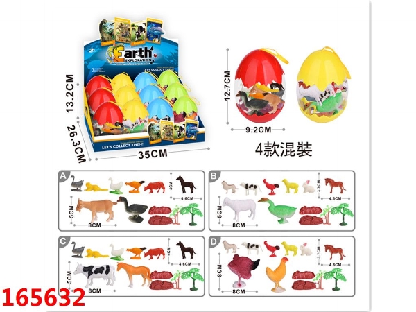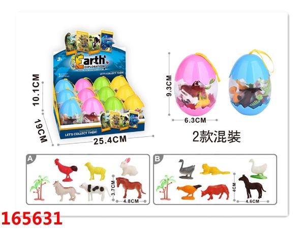 3.5寸农场动物2PCS+2.5寸农场动物6PCS+2石头+2树,12个蛋壳/盒