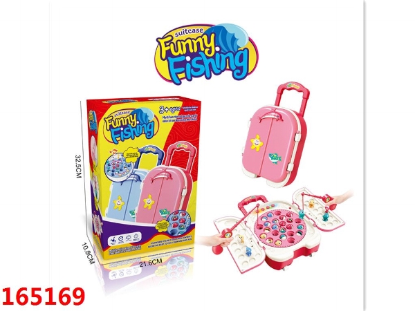 卡通拉杆箱电动钓鱼盘玩具(粉色)