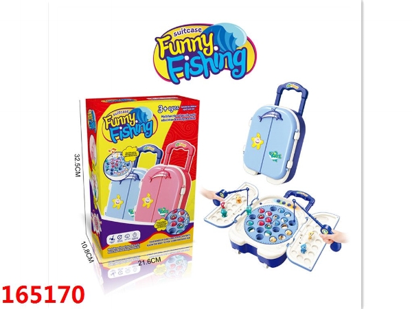 卡通拉杆箱电动钓鱼盘玩具(蓝色)