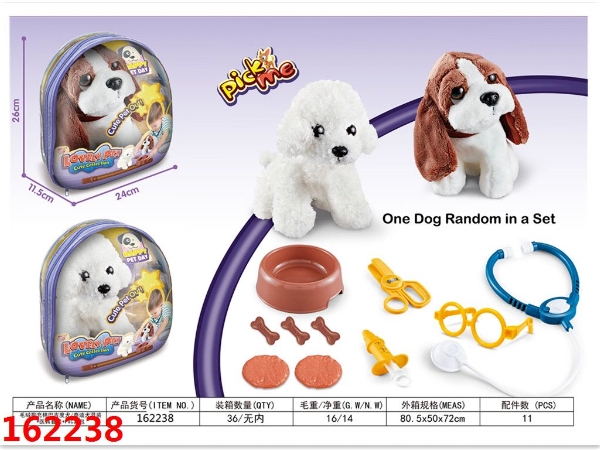 毛绒狗充棉巴吉度犬/泰迪犬混装+医具套装+PVC背包